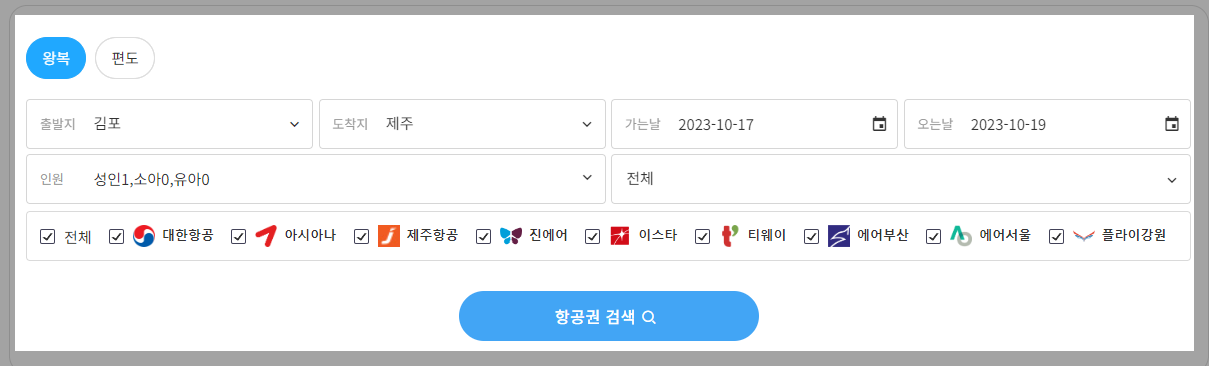 제주도 항공권 실시간 가격비교